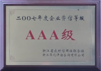 浙江省工商企業信用AAA級守合同重信用單位