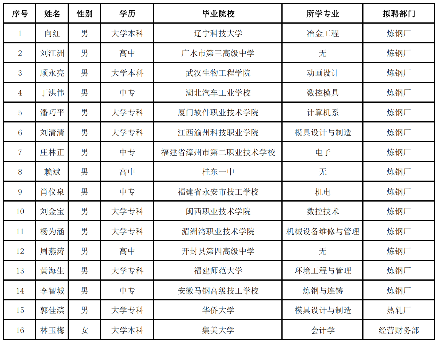 依據寶鋼德盛不銹鋼有限公司2023年招聘計劃,結合集團公司《陽光招聘具體操作指引》工作要求,通過個人自愿報名、資格復審、面試考評等環節,經集團公司審批通過,現將2023年社會招聘第一批擬聘人員名單公示如下: